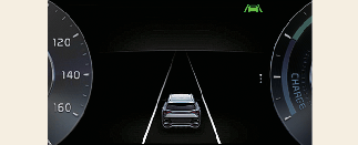 Lorsque le marquage des voies (ou des bords de routes) est détecté, les lignes de voie sur le combiné passent du gris au blanc et le témoin lumineux vert (