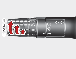 Cuando el interruptor de las luces está en la posición de las luces traseras (1.ª posición), los faros, las luces traseras, la de posición, la de la matrícula y del panel de instrumentos están encendidos.