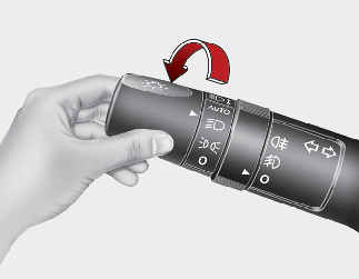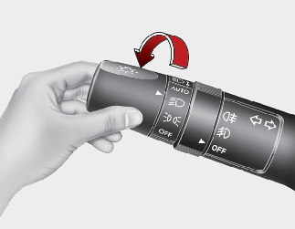 Para accionar las luces, gire el mando en el extremo de la palanca de control a una de las siguientes posiciones: