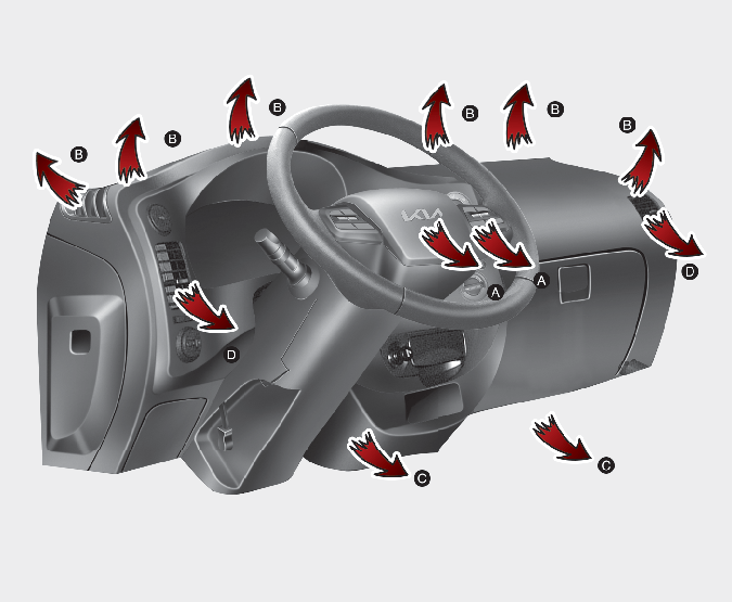 Mientras la mayor parte del aire se dirige hacia el suelo y hacia el parabrisas, una cantidad inferior se dirige hacia los