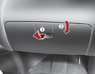 Para abrir la guantera, tire de la empuñadura (1) y la guantera se abrirá automáticamente (2). Cierre la guantera después de utilizarla.