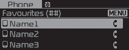 Pulse el botón[PHONE] (teléfono)► Seleccione [Favourites(Favorites)] (favoritos).