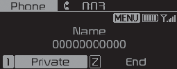 Private (privado): pasa una llamada de voz del manos libres del vehículo al dispositivo Bluetooth®.