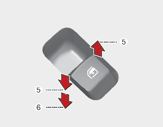 To open or close a window, press down or pull up the front portion of the corresponding switch to the first detent position (5).