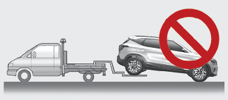 Do not tow the vehicle backwards with the front wheels on the ground as this may cause damage to the vehicle.