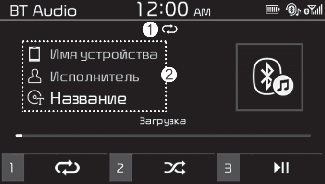 Вы можете прослушивать аудиофайлы, хранящиеся на устройстве с беспроводной технологией Bluetooth аудио через громкоговорители автомобиля.