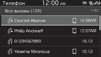 Доступ к истории вызовов может быть получен только тогда, когда мобильный телефон подключен к системе.
