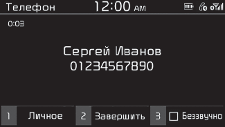 Во время звонка отобразится показанный ниже экран. Нажмите кнопку для использования требуемой функции.