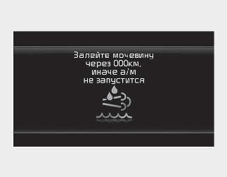 к слишком низкому уровню, появляется предупреждение «Refill Urea in 000 km or vehicle will not start» (Залейте мочевину через