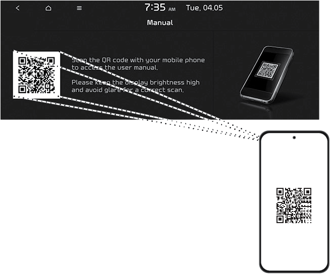 Scanning QR code: Press [SETUP] > [General] > [System info] > [Manual]. Scan the QR code, then tap URL in the code to go to the web page.