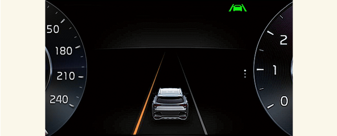 When lane markings (or road edges) are detected, the lane lines on the cluster will change from gray to white and the green (