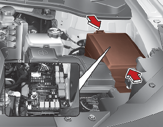 Toujours reposer soigneusement le cache du tableau à fusibles dans le compartiment moteur, pour le protéger des pannes électriques qui peuvent se produire après un contact avec de l'eau. Prêtez attention au son du déclic pour vous assurer que le couvercle du panneau de fusibles est bien fixé.
