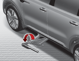 Then position the wrench as shown in the drawing and tighten the wheel nuts. Be sure the socket is seated completely over the nut. Do not stand on the wrench handle or use an extension pipe over the wrench handle. Go around the wheel tightening every other nut until they are all tight. Then double-check each nut for tightness. After changing wheels, have the system checked by a professional workshop. Kia recommends to visit an authorised Kia dealer/service partner.
