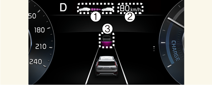 Vzdialenosť vozidla vpredu je na prístrojovej doske zobrazená podľa skutočnej vzdialenosti medzi vašim vozidlom a vozidlom vpredu.