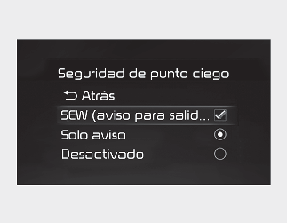 Inicio > Características de su vehículo > Aviso de salida segura (SEW) > Configuración de la aviso de salida segura (SEW)