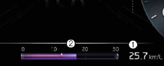 Отображается текущее значение расхода топлива за последние несколько секунд, если скорость автомобиля превышает примерно 10 км/ч (6 миль/ч).