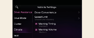 Настройки системы помощи водителю (информационно-развлекательная система)