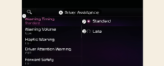Стандартный: используйте в обычных условиях вождения. Если функция слишком чувствительная, измените таймер предупреждений на «Позже».