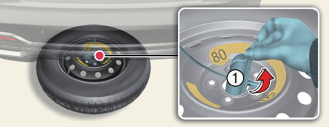 Проследите за тем, чтобы фиксатор запасного колеса правильно совместился с его центральным отверстием, чтобы колесо не стучало при движении. В противном случае запасное колесо может сорваться с держателя и стать причиной дорожно-транспортного происшествия.