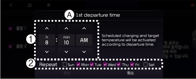 Defina a hora de partida prevista para o carregamento programado e a temperatura alvo.