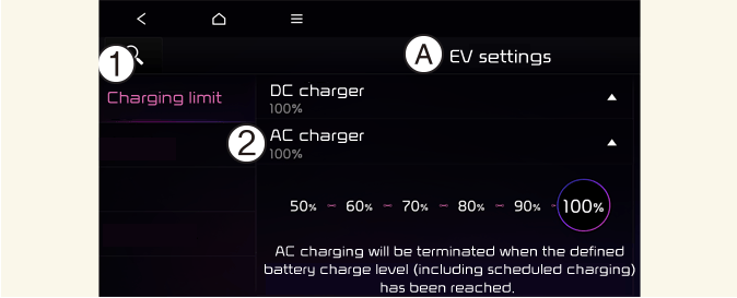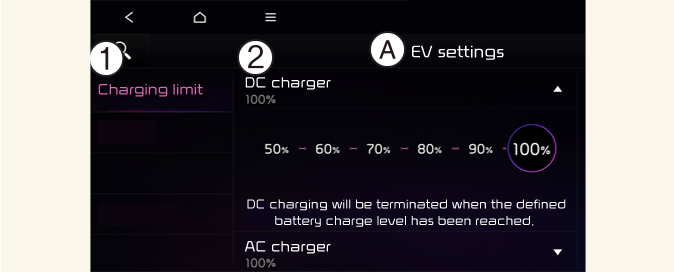 O nível de carga alvo da bateria pode ser selecionado quando carregada com o carregador CA ou o carregador CC.