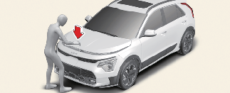 Abra o capô depois de ter estacionado o veículo numa superfície plana, colocado a caixa de velocidades na posição P (estacionamento) e acionado o travão de estacionamento.