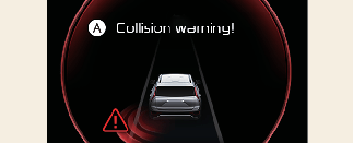 O aviso de colisão irá alertar o condutor com a luz de aviso nos espelhos retrovisores exteriores (espelhos laterais) e no head-up display (se instalado), com um aviso sonoro e vibração no volante (se instalada).