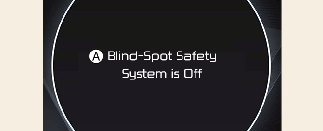 Wanneer de motor opnieuw wordt gestart terwijl de Blind-spot Collision-avoidance Assist (botsingsvermijding blinde hoek) uitgeschakeld is, verschijnt de melding Blind-Spot Safety System is Off (Veiligheidssysteem blinde hoek is uitgeschakeld) op het instrumentenpaneel.