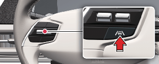 Met de auto ingeschakeld, drukt u kort op de toets Lane Driving Assist (hulp op de rijstrook) op het stuurwiel om Lane Following
