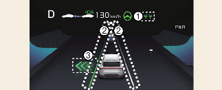 De functie Highway Lane Change Assist (rijhulp voor rijstrook wisselen op de snelweg wordt uitgezet in het instellingenmenu als de weg een eenrichtingsweg wordt, er een kruising of oversteekplaats aankomt, u een weg zonder structuur zoals een middenberm of vangrail oprijdt of als er een voetganger of fietser op de rijstrook is.)