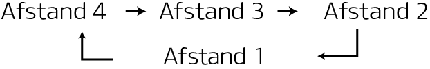 Hver gang der trykkes på knappen Køretøjsafstand, ændres køretøjsafstanden som følger: