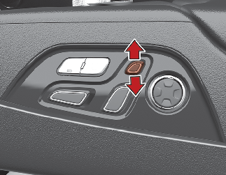 스위치를 이용하여 헤드레스트의 전·후 위치를 조절할 수 있습니다. 스위치를 앞으로 당기면 헤드레스트가 앞 방향으로 이동하고 뒤로 당기면 뒷 방향으로 이동합니다.