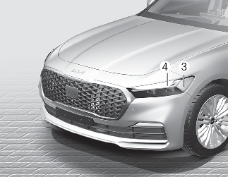 다음 조건을 모두 만족하면 헤드램프(3,4), 리어콤비램프(1,2) 미등/후미등이 정해진 순서로 작동합니다.