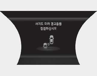 사이드 미러 (실외 미러) 경고등에 이상이 있으면 계기판에 경고문이 일정시간 표시되며 통합 경고등 (