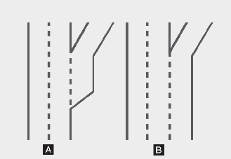 내비게이션에서 분기 형태의 진출입로로 경로를 안내하고 마지막 차로로 주행하는 경우, 진출입로 진입 전에 자동으로 감속합니다. 분리 형태의 진출입로라면 진입 전에 자동으로 감속하지 않습니다.