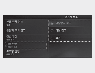 이탈 경고를 선택한 경우에는 조향을 도와주지 않습니다.