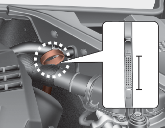 엔진 오일 레벨 게이지를 다시 꽂은 후 뽑으십시오.