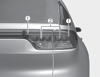 If the tail lamp (1) or tail and stop lamp (2) does not operate, we recommend that the system be checked by a professional