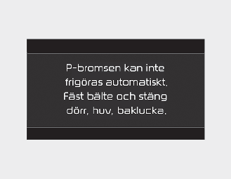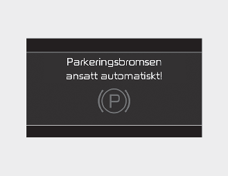 Om du försöker att trycka ner gaspedalen och köra iväg med EPB aktiverad, utan att den lossas automatiskt, hörs en varningssignal (en gång) och ett meddelande visas.