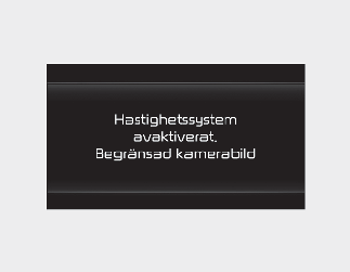 Om detta inträffar kommer varningsmeddelandet “Speed limit system disabled. Camera obscured” (Varningssystem för framåtriktad uppmärksamhet inaktiverat. Kamera skymd.) visas på instrumentpanelen. Intelligent farthållare kommer att fungera normalt när snö, regn eller främmande material har avlägsnats.
