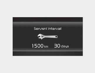 Pokud zbývající vzdálenost nebo časový odstup dosáhne hodnoty 1 500 km (900 mil) nebo 30 dnů, bude se po každém přepnutí spínače zapalování nebo tlačítka ENGINE START/STOP (Nastartování/vypnutí motoru) do polohy ON (Zapnuto) na několik sekund zobrazovat hlášení „Service in“ (Servis za).