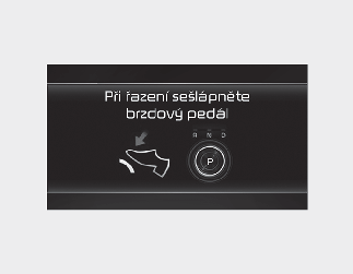 Tato zpráva se na LCD displeji objeví, když při řazení nesešlápnete brzdový pedál.