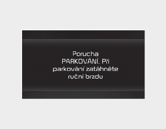 PARK malfunction (Porucha polohy PARK) Engage parking brake when parking vehicle (Porucha funkce. Po zaparkování vozidla aktivujte parkovací brzdu)