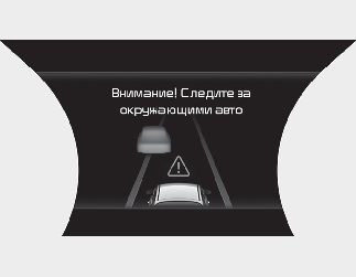 В перечисленных ниже условиях на приборной панели отобразится предупреждение «Watch for surrounding vehicles» (Следите за окружающими транспортными средствами) и прозвучит звуковое сообщение для оповещения водителя о дорожных условиях по ходу движения.