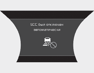 Если система интеллектуального круиз-контроля временно отключена, на приборной панели появится предупреждающее сообщение «Smart Cruise Control canceled» (Система круиз-контроля отключена) и прозвучит звуковое сообщение для оповещения водителя.