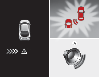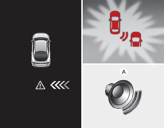 차량 후방 왼쪽 또는 오른쪽에서 자차를 향해서 접근하는 차량을 감지할 경우, 경고음이 울리고 실외 미러의 경고등이 깜빡이고 계기판에 경고를 통해 운전자에게 알려줍니다. 후방 모니터가 작동 중이면 인포테인먼트 시스템 화면(사양 적용 시)에도 경고를 표시합니다.
