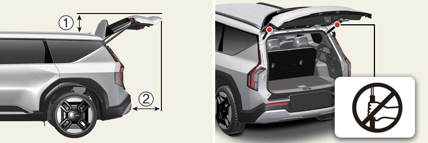Запрещается самостоятельно модифицировать или ремонтировать любую часть электроприводной крышки багажника. Kia рекомендует обратиться к официальному дилеру Kia или партнерской сервисной компании.