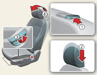 Нажмите кнопку фиксатора подголовника (3), и одновременно потяните подголовник вверх (4).