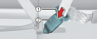 Чтобы отстегнуть ремень безопасности, нажмите кнопку (1) на замке.