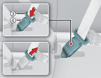 Пластина (1) и пряжка (2) должны быть постоянно зафиксированы. Потяните за металлический язычок (3) и вставьте его (3) в пряжку (4). Когда язычок зафиксируется в пряжке, раздастся щелчок. Проверьте, не перекручен ли ремень.